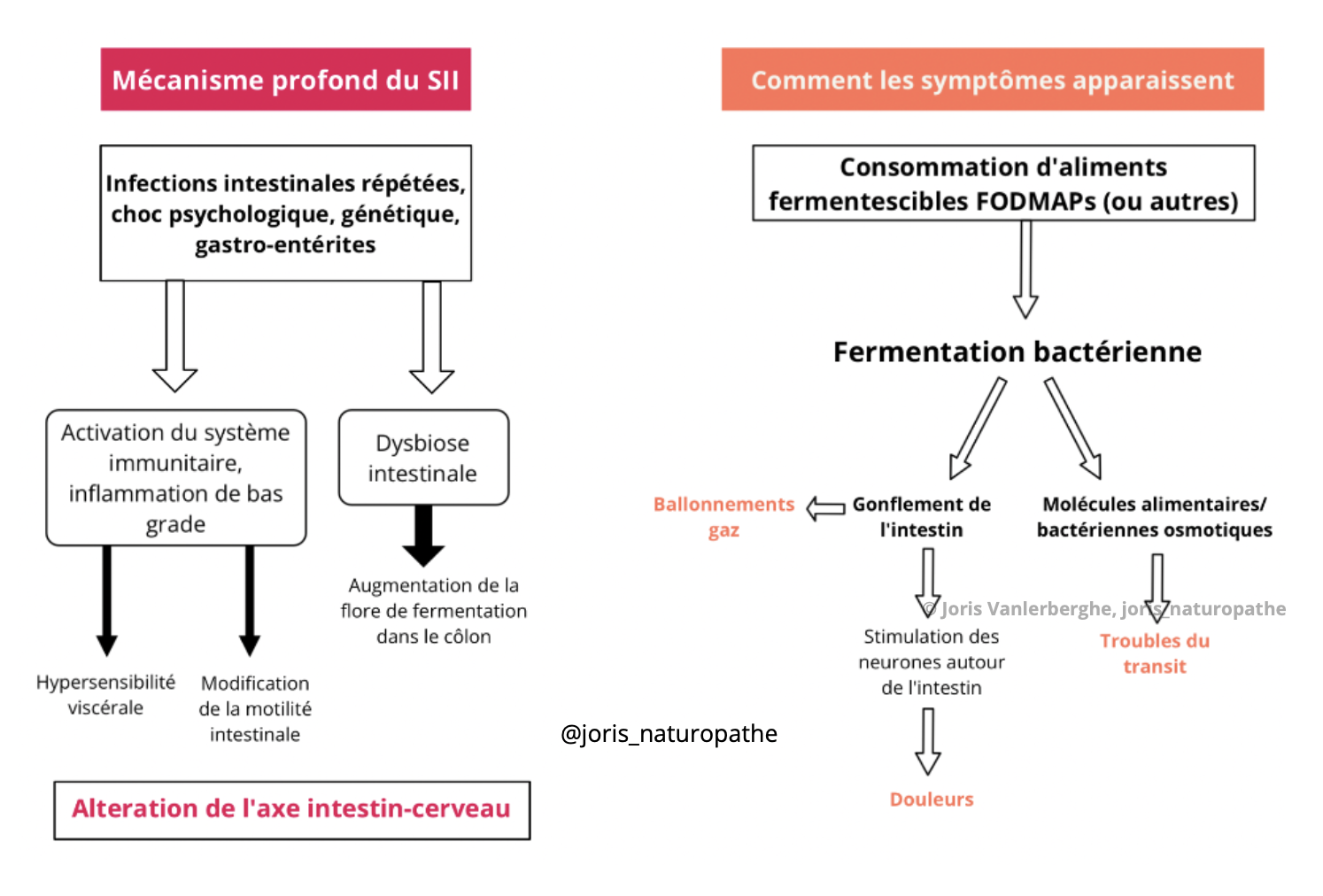 Ces altérations pourraient arriver après une infection bactérienne notamment qui conduirait à l’altération du système immunitaire puis du microbiote intestinal conduisant à un déséquilibre suffisamment important pour déclencher des symptômes digestifs.