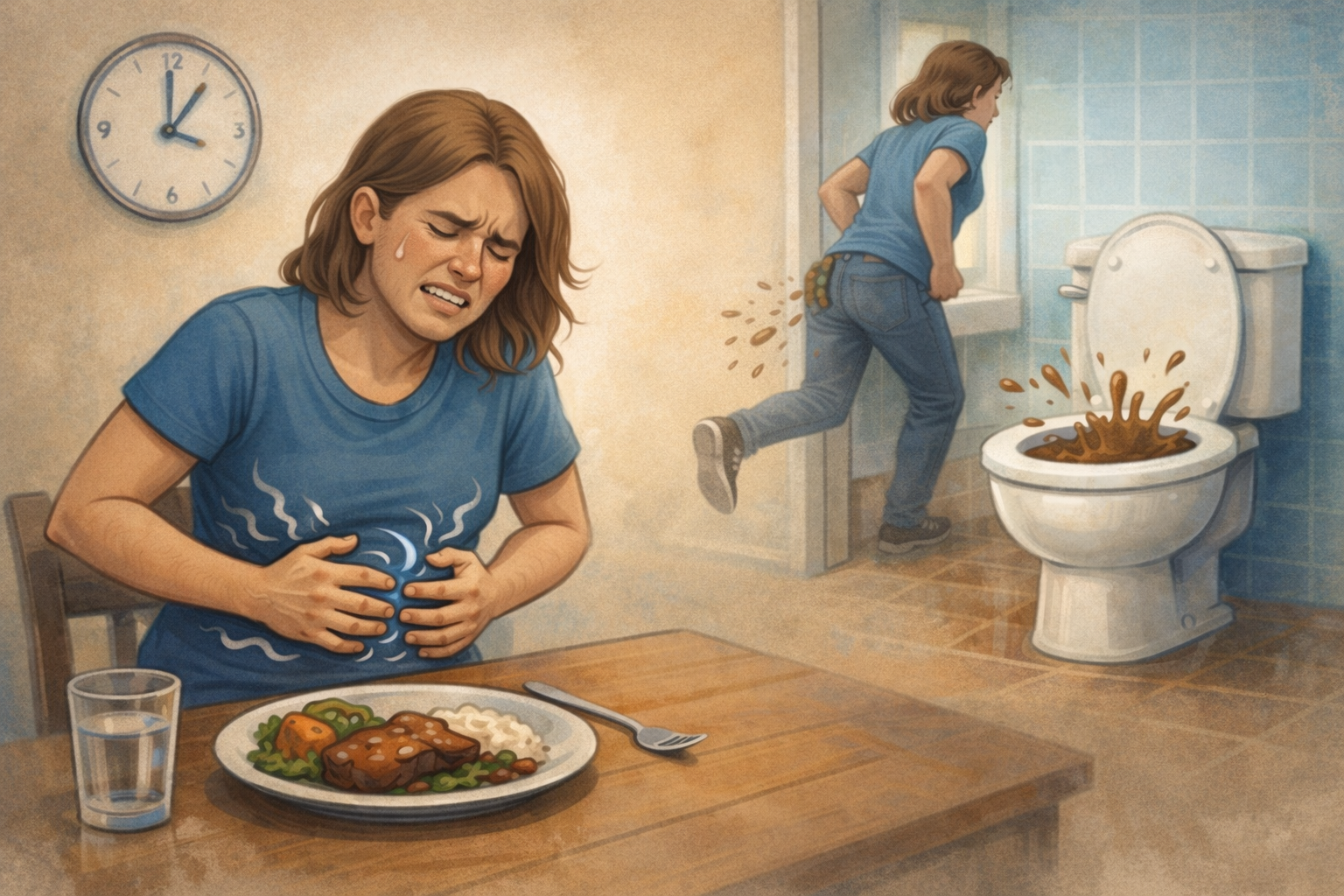 Le ventre qui gargouille et les selles liquides apparaissent généralement peu de temps après le repas.