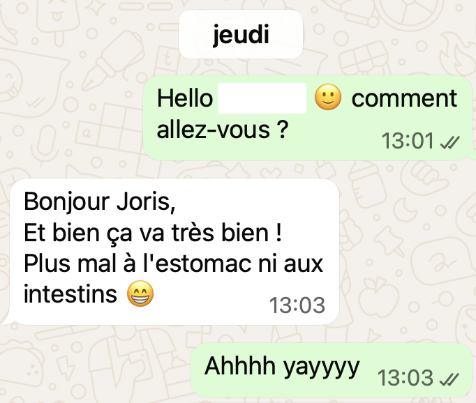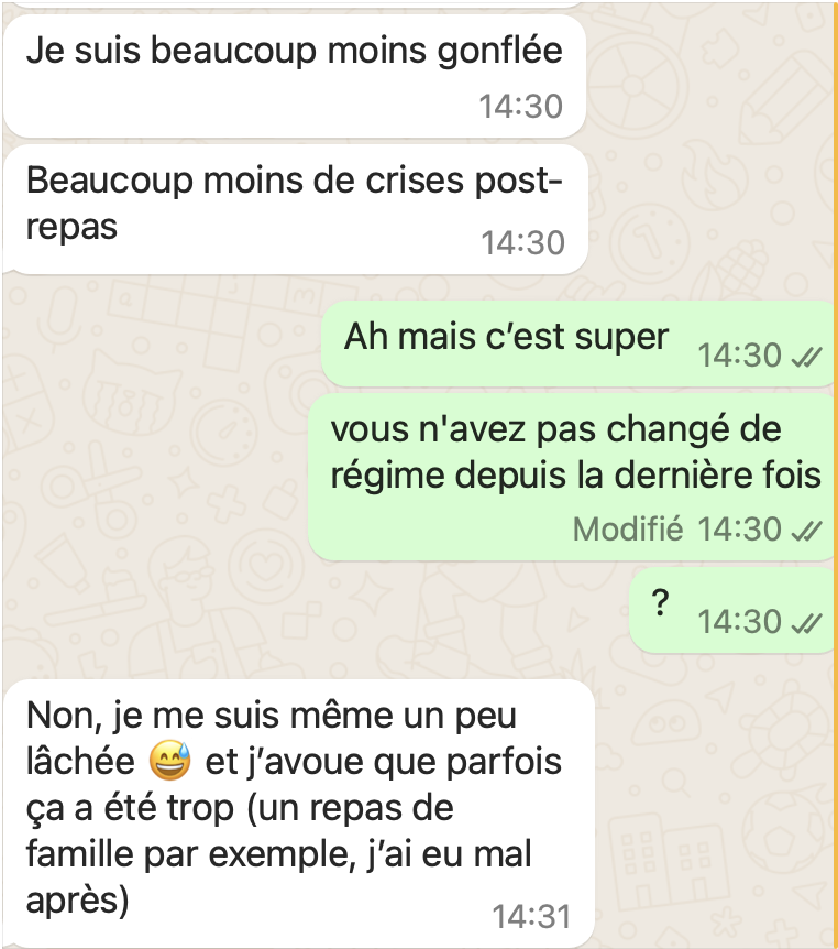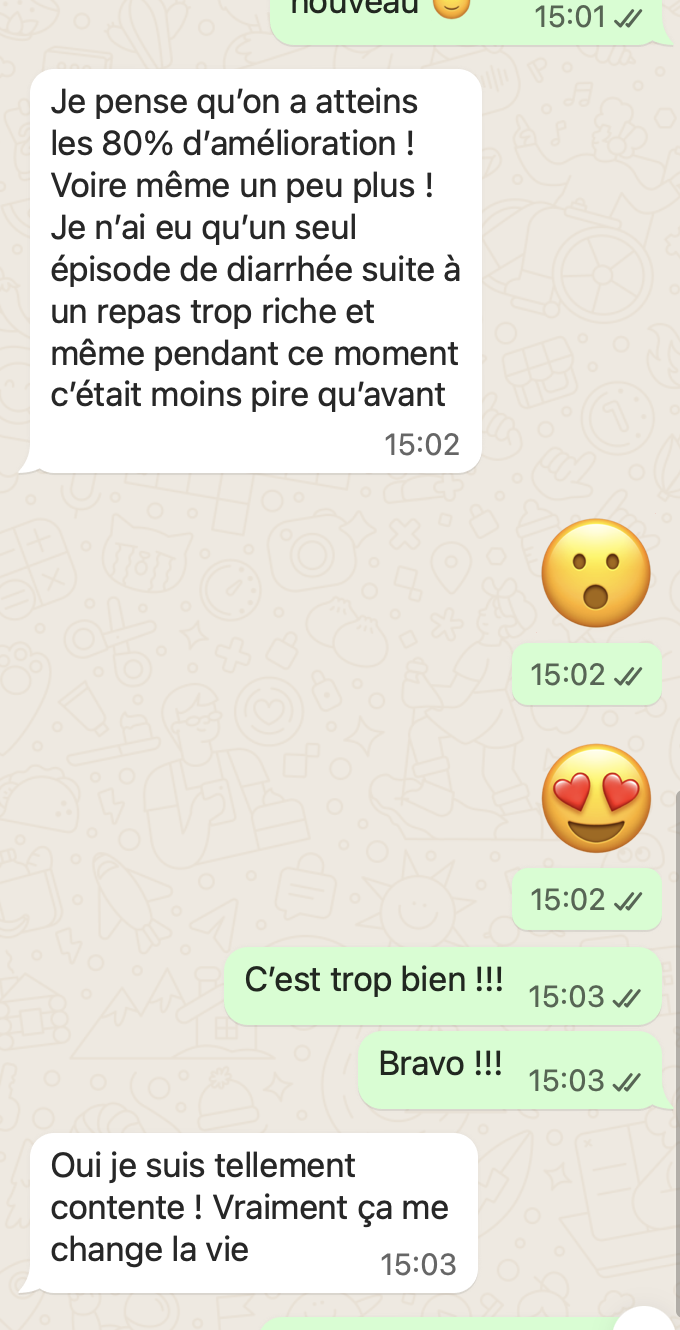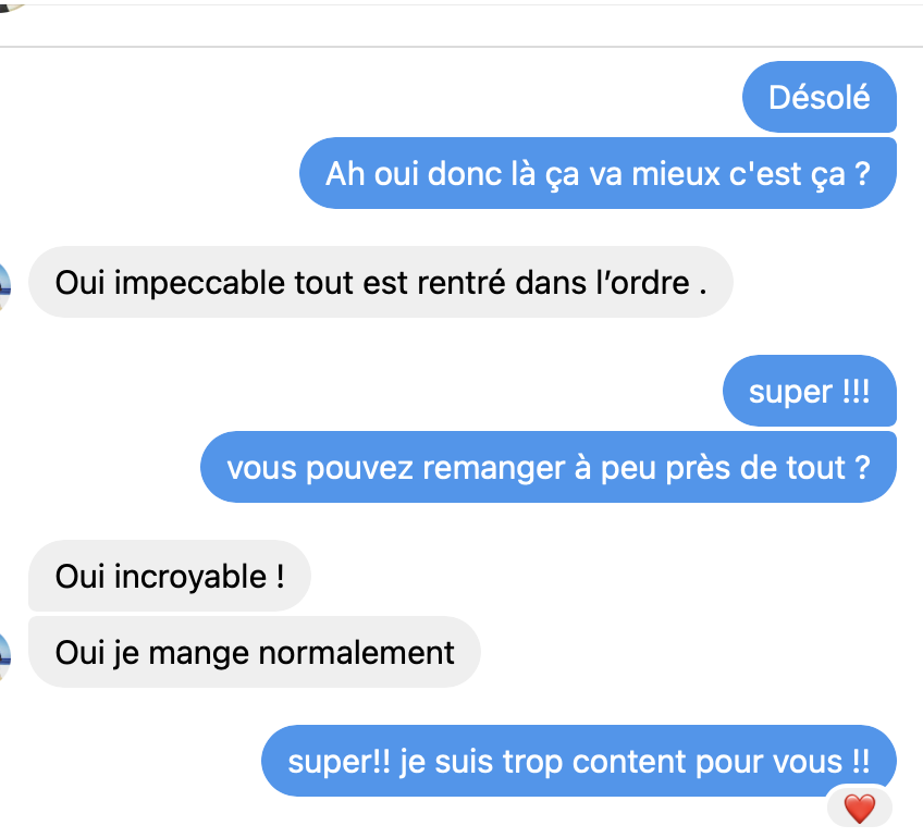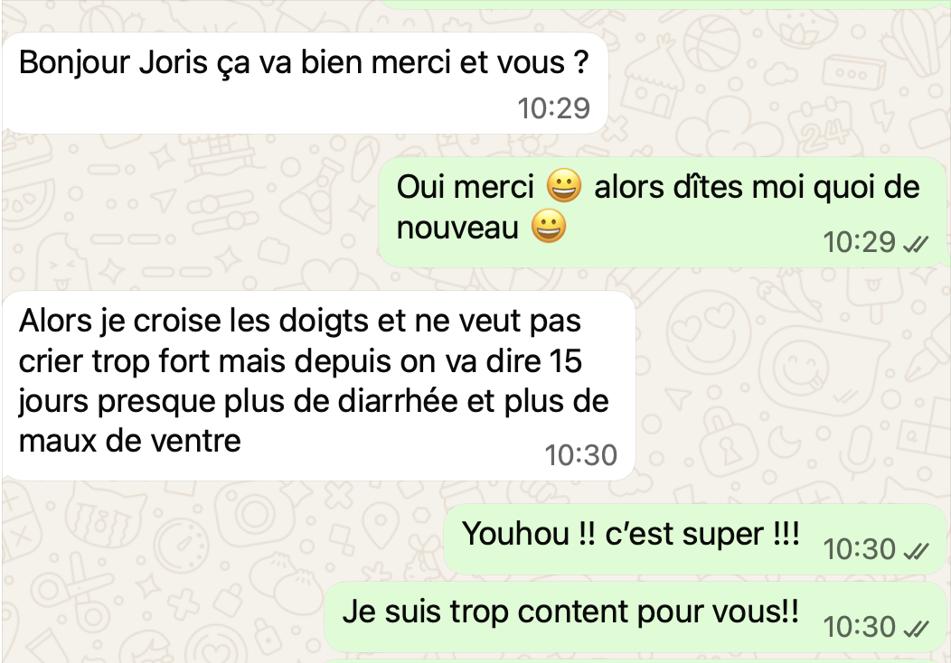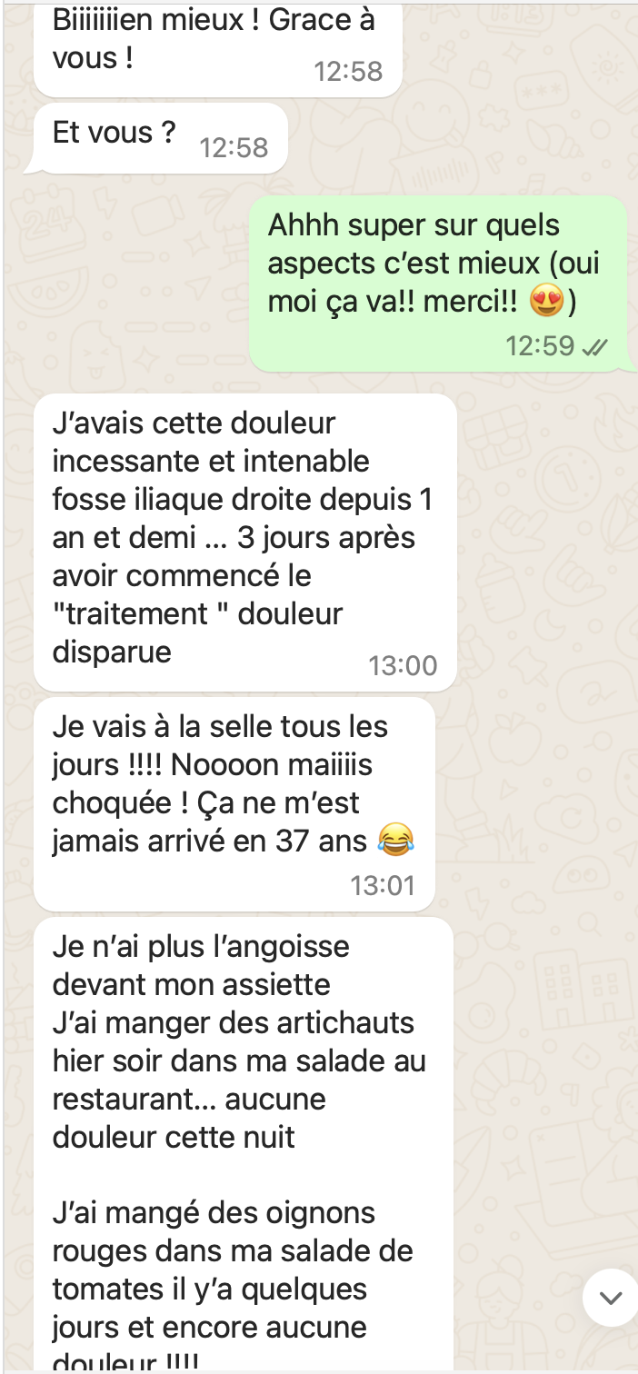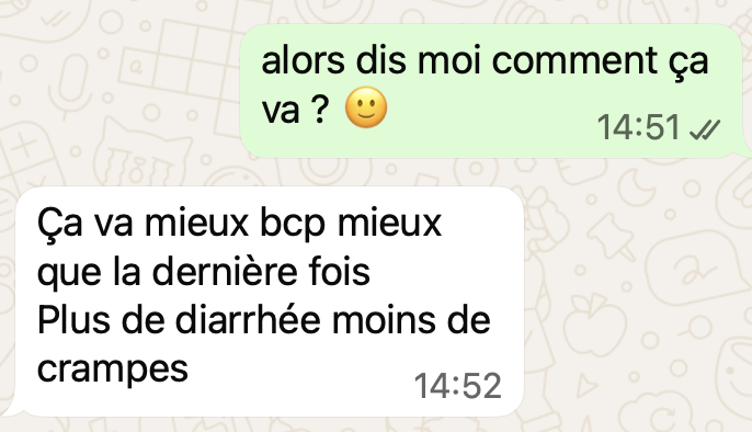 Une fois réservé, après votre réponse par mail de la façon dont vous souhaitez communiquer, voici quelques exemples de ce à quoi ça ressemble. C'est très simple : comme une conversation entre amis ! Vous pouvez évidemment répondre en message vocal pour gagner du temps.