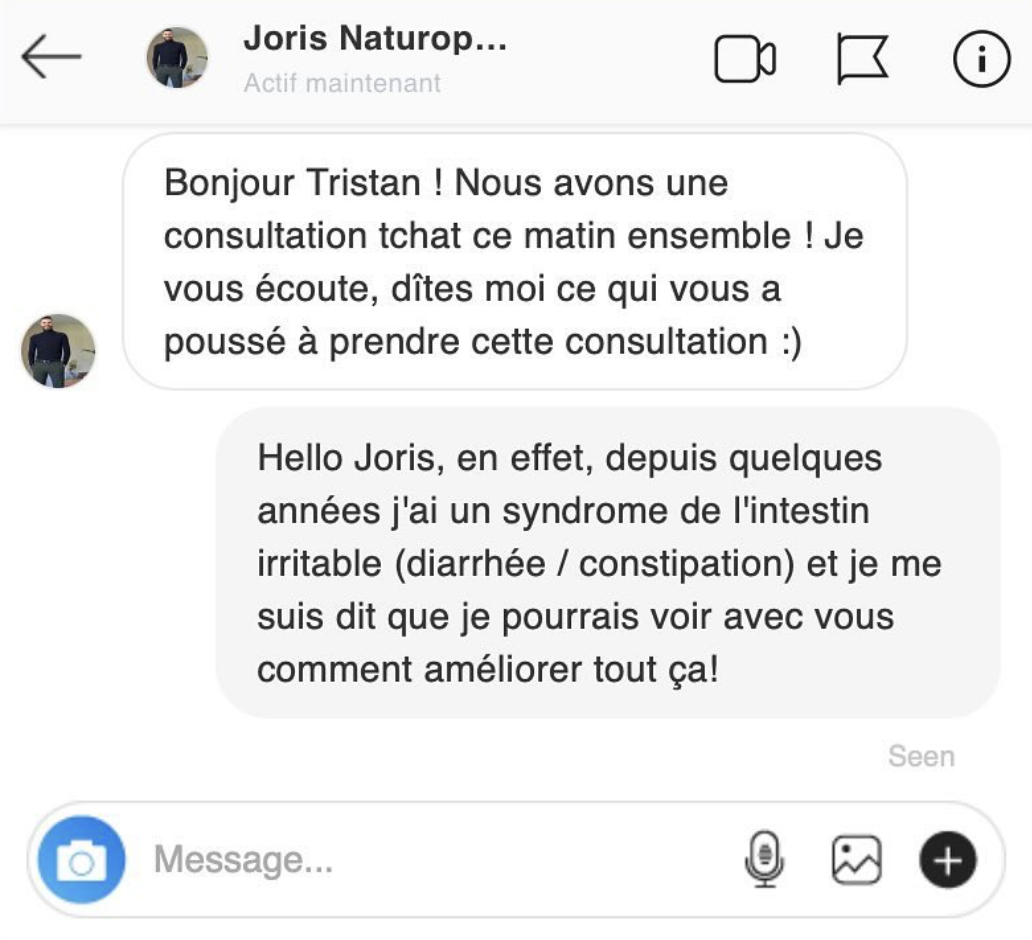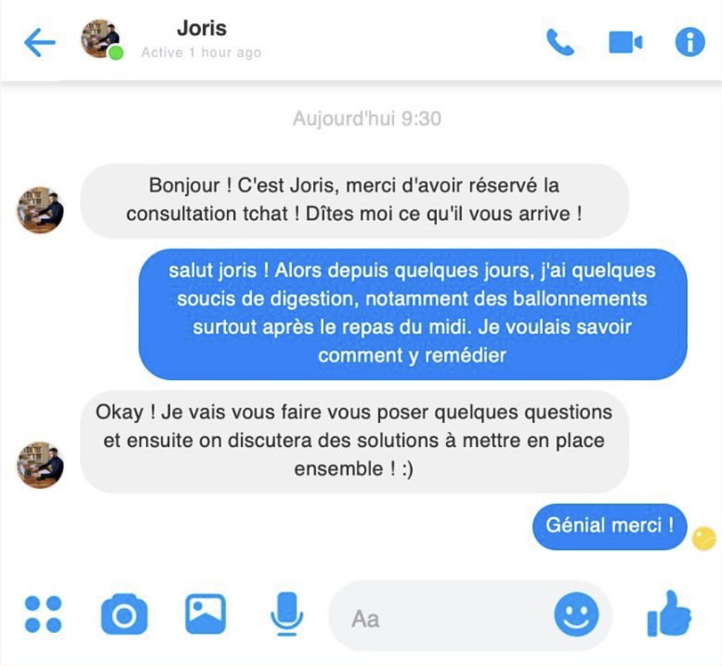 Il s’agit d’une consultation 100% par écrit, en ligne et en direct, comme une conversation classique ! ⌨️